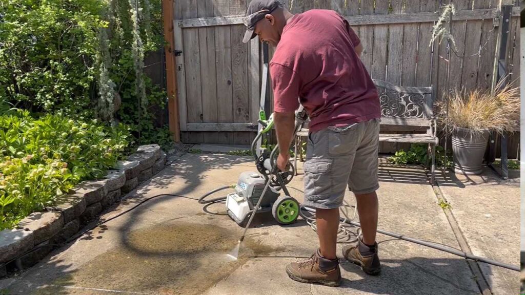 The GPW2000 performed admirably. While it was not quite powerful enough to make the concrete look “brand new” and spotless, the difference was significant. It stripped away the organic growth and revealed the original gray stone beneath. If you have deep oil stains, you might need a higher PSI unit or a chemical pre-treatment, but for general grime, this machine hits the sweet spot.
