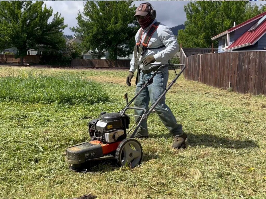 On flat ground, this machine is a monster. It clears a 22-inch path, which is nearly double what most handheld trimmers can manage. If you have a large, level field that has gotten out of control, this unit will save your back and shoulders. You aren’t carrying the weight; you are just pushing it along.