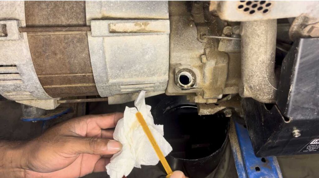 While the oil is draining, wipe your dipstick clean and check the color. Dark black oil is normal for a used engine, but look for any metallic “glitter,” which could indicate internal wear.